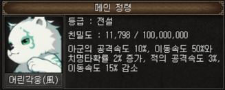 수호궁수 태진 편입니다. 1321판 진행, 총 11시간 사냥삼색채경단 1000개 소모 후 친밀도 2648 증가. 중간에 정탐도 한번 진행했기 때문에 6을 추가로 빼주면 2642가 증가했네요. 판수로는 1321판을 진