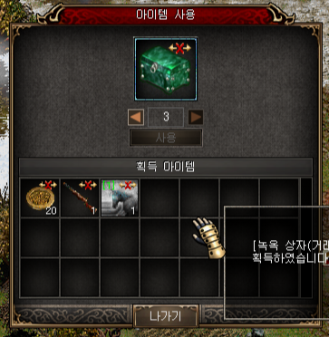 그 이후 거보 게이지가 가득 차있길래 조금 털어주고 나온 녹옥 3개를 까보니,